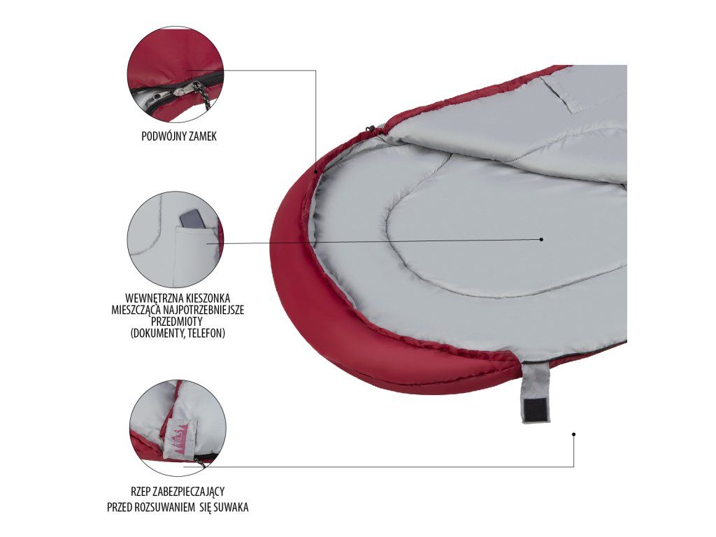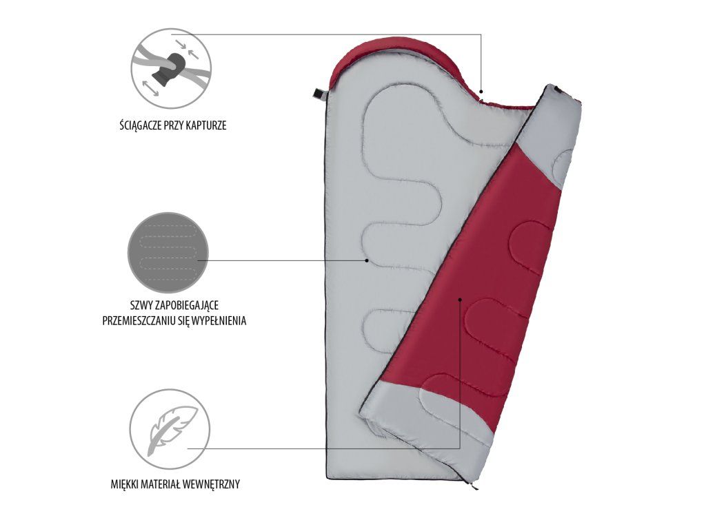 Prodloužený spací pytel NILS Camp NC2008 bordó/šedý