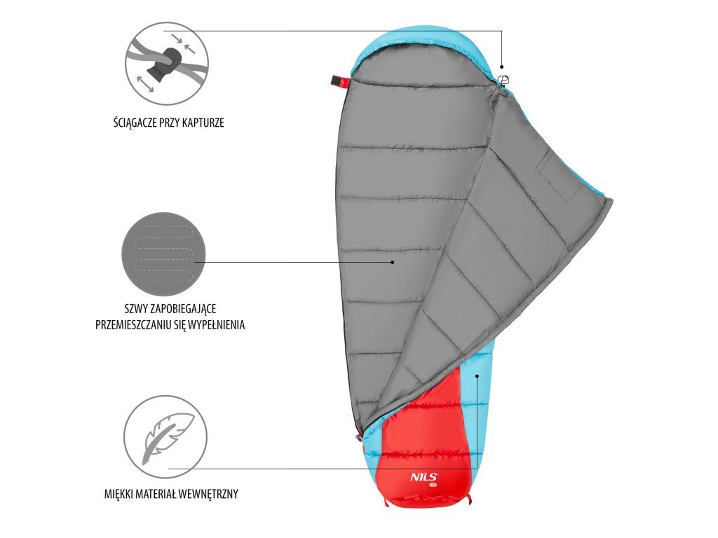Spací pytel, typu mumie, NILS Camp NC2012 využijete během chladných nocí při kempování, spaní pod širým nebem a nebo jen při stanování na zahradě.