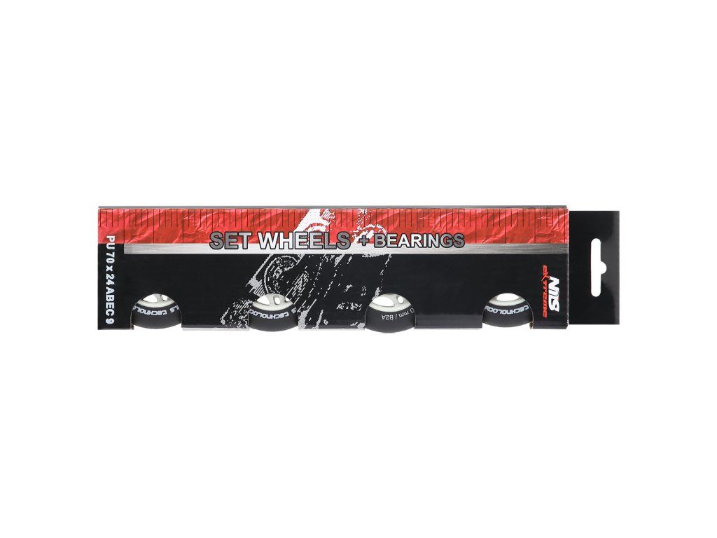 Matná kolečka NILS Extreme PU 70x24 82A s ložisky ABEC 9, černá, 4 ks
