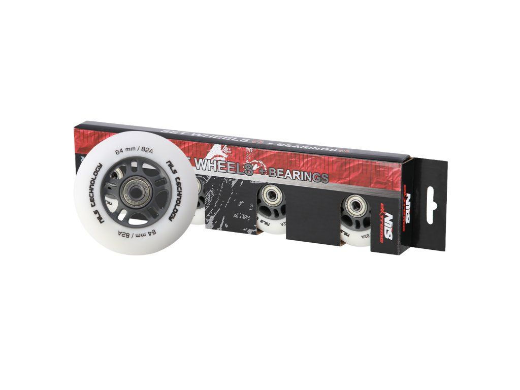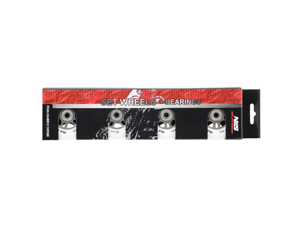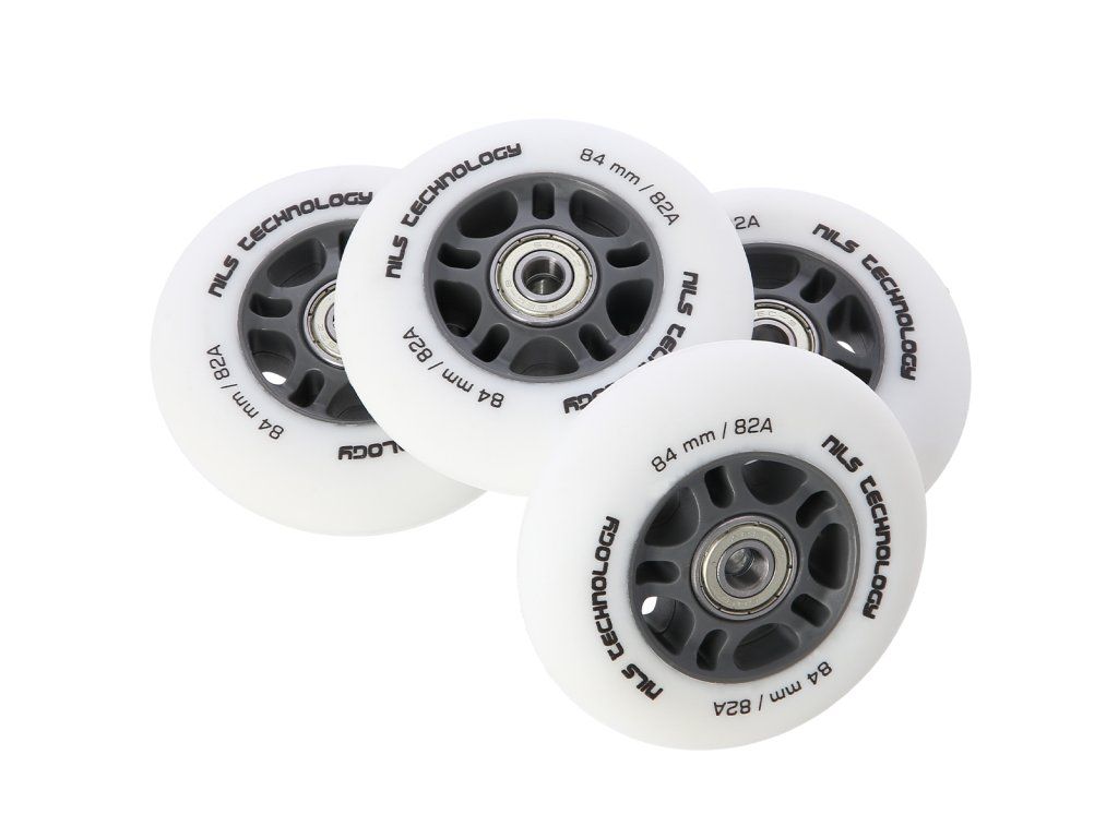 Matná kolečka NILS Extreme PU 84x24 82A s ložisky ABEC 9, bílá, 4 ks
