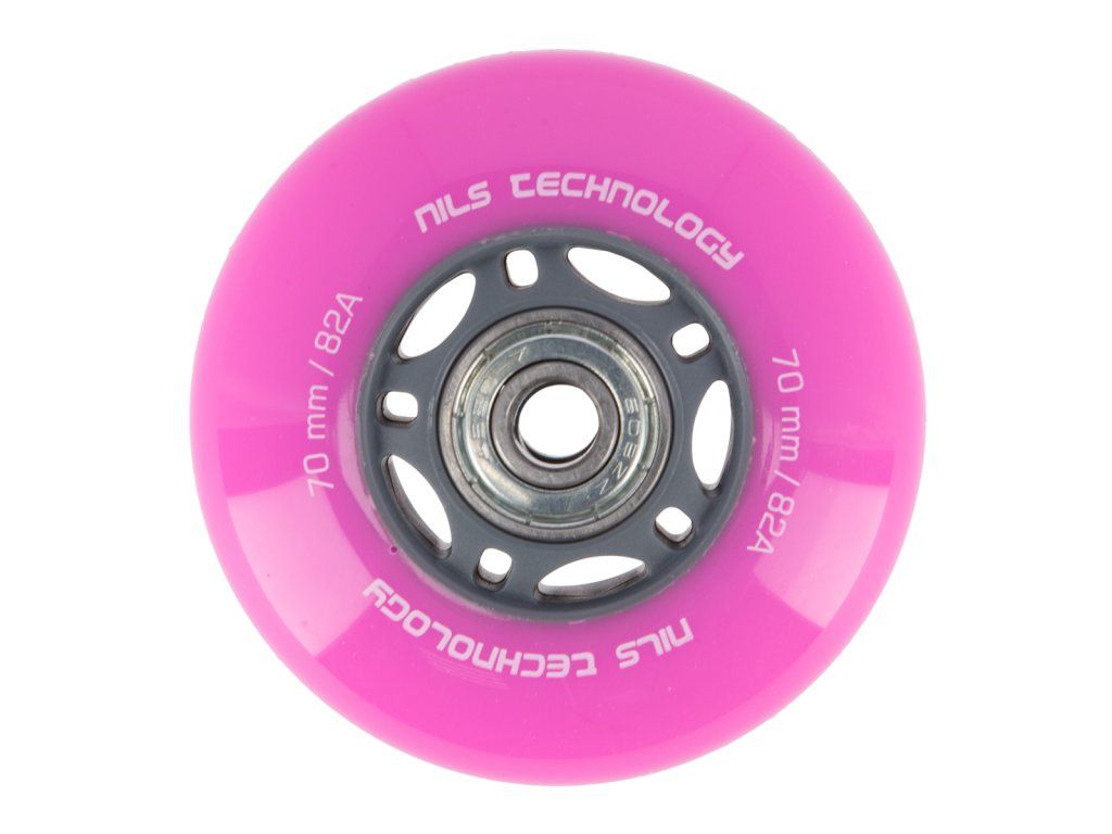 Náhradní PU kolečka s ložisky NILS EXTREME pro kolečkové brusle. Tvrodst 82A zaručuje přizpůsobení každému povrchu. Ložiska ABEC 7 zaručují dlouhou životnost. Velikost koleček se volí podle stylu jízdy. Menší kolečka jsou pomalejší, ale umožňují lepší manévrovatelnost. Větší kolečka jsou rychlejší, ale obtížněji zatáčí.