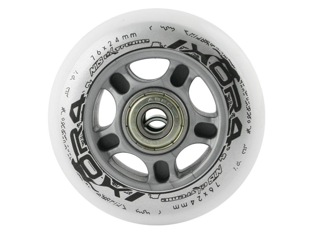Sestava bílých PU koleček 76x24 + ložiska ABEC7 NILS EXTREME