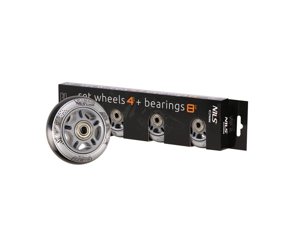 Sestava černých PU koleček 80x24 + ložiska ABEC9 NILS EXTREME