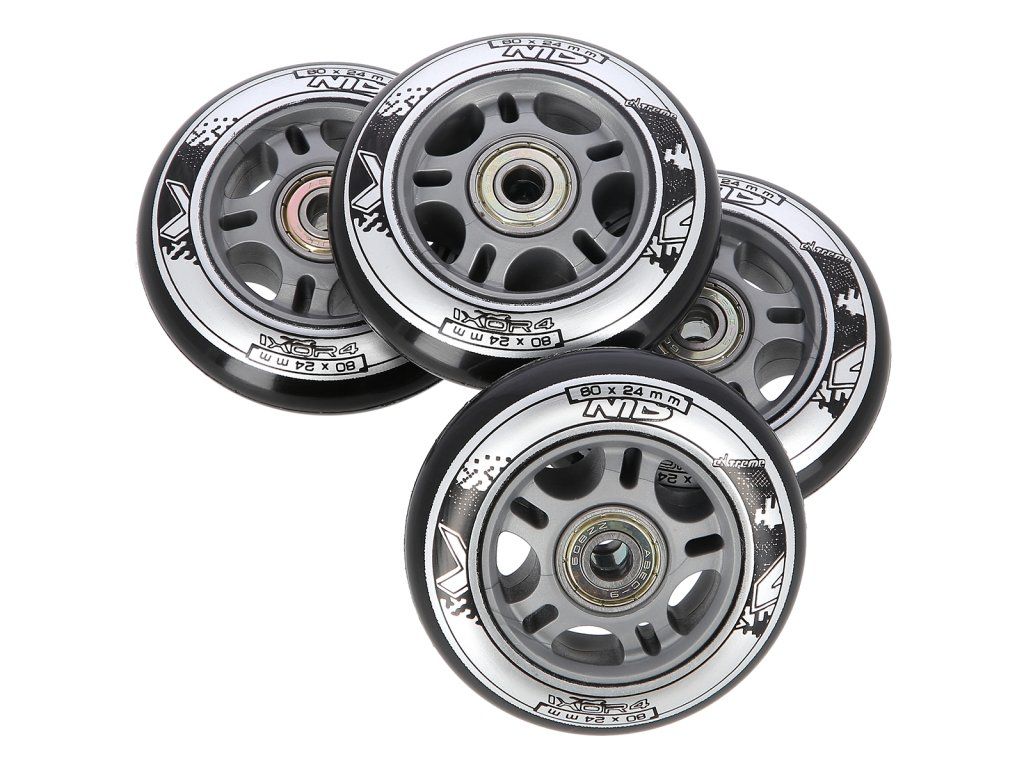 Náhradní sada koleček velikosti 80x24 mm černé barvy a tvrdostí 82 A s ložisky ABEC 9.