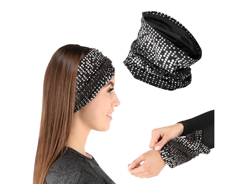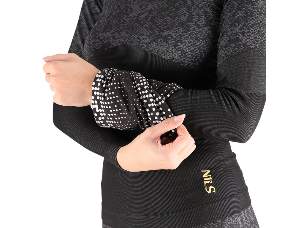 Další výhodou šátku NILS je, že... nemusí být nutně používán výhradně jako šátek na krk. Díky vysoké elasticitě jej můžeme snadno srolovat a použít jako čelenku nebo náramek na zápěstí!