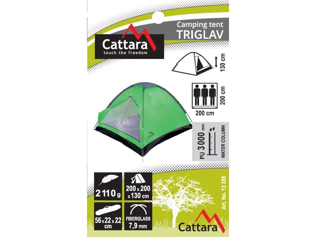 V jednoplášťovém stanu Cattara TRIGLAV s celkovými rozměry 200 x 200 x 130 cm se pohodlně vyspí 3 osoby. Hlavní vstup je opatřen oboustranným zipem pro snadné otevírání zvenku i zevnitř. Po otevření hlavního vstupu narazíte na síťovanou prodyšnou plentu (moskytiéru), která zamezí vstupu nezvaným hostům, jako jsou komáři, mouchy a jiný hmyz.