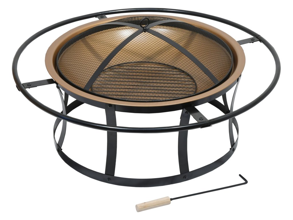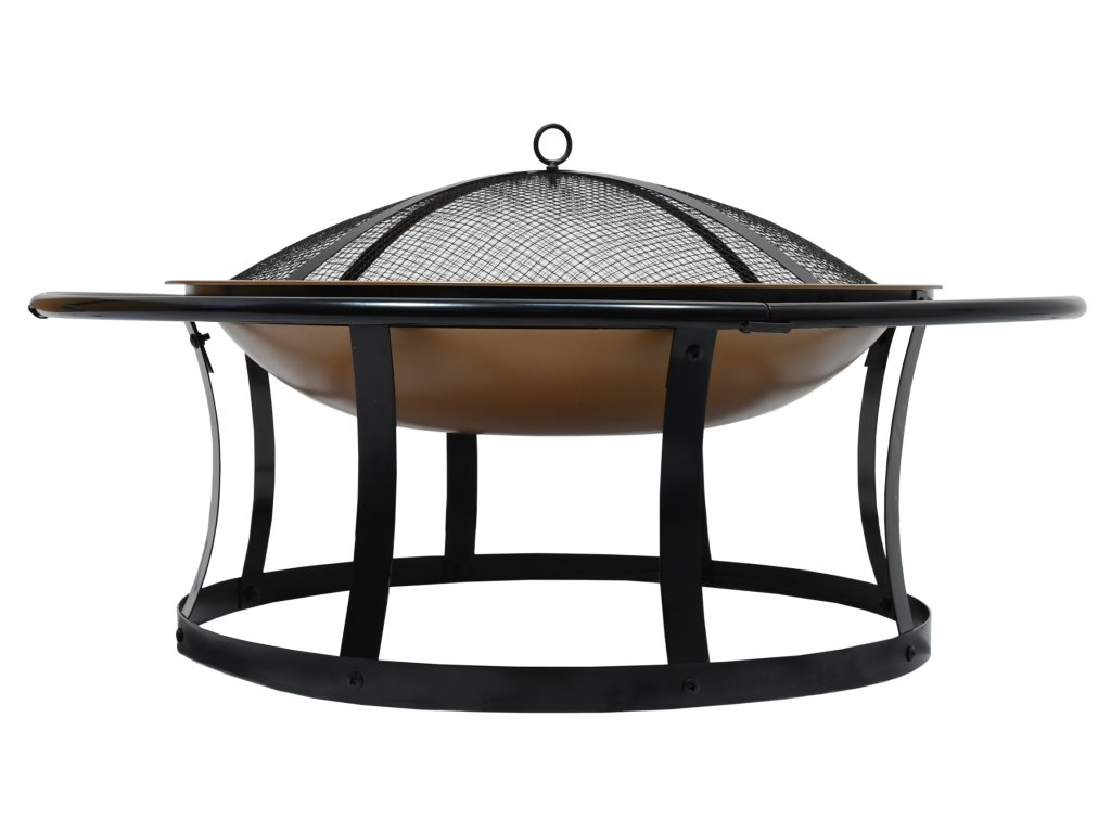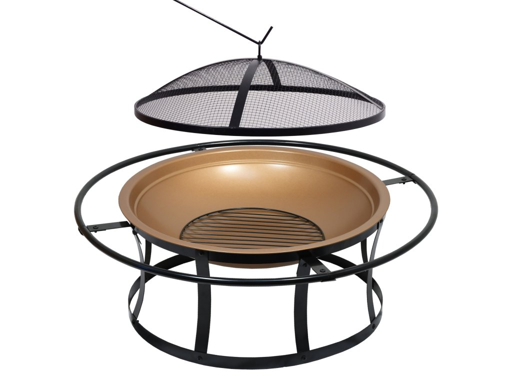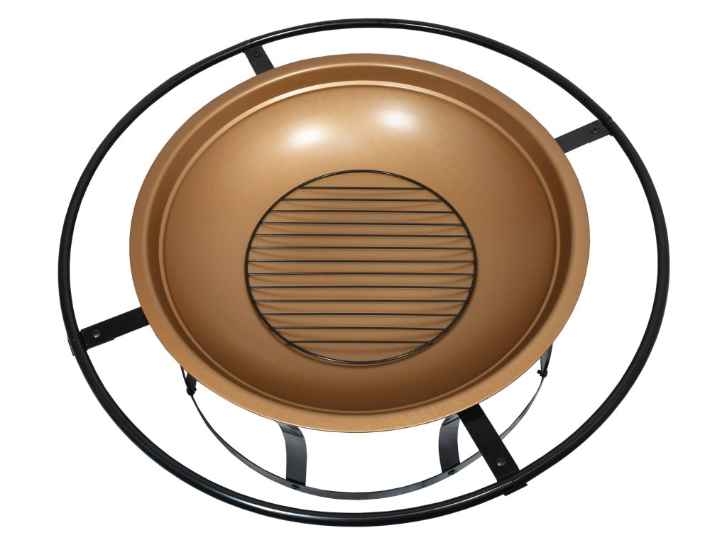 Konstrukce ohniště se vyrábí z kvalitní oceli s vysokoteplotním černým a mosazným nátěrem. Okrajový prstenec využijete jako madlo pro snadnější přenášení. Propojené nohy zajišťují ohništi větší stabilitu, aby se jen tak nepřevrátilo.