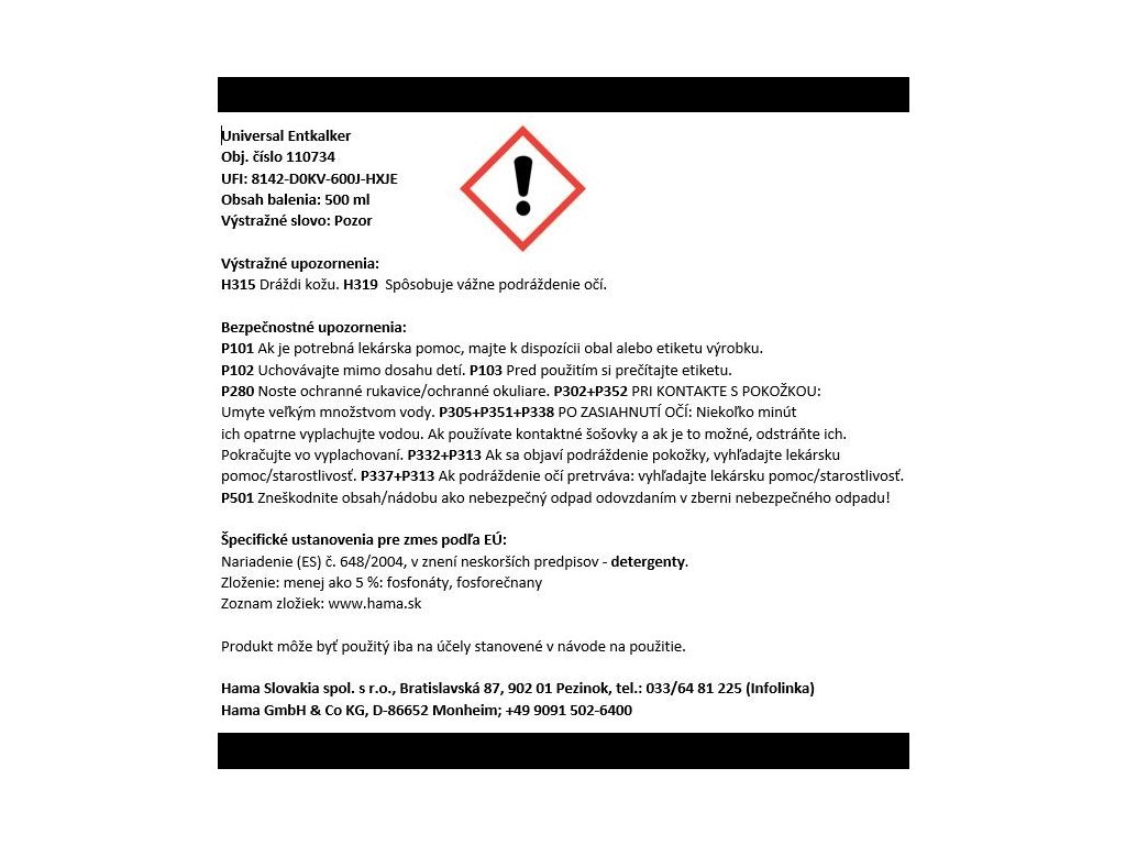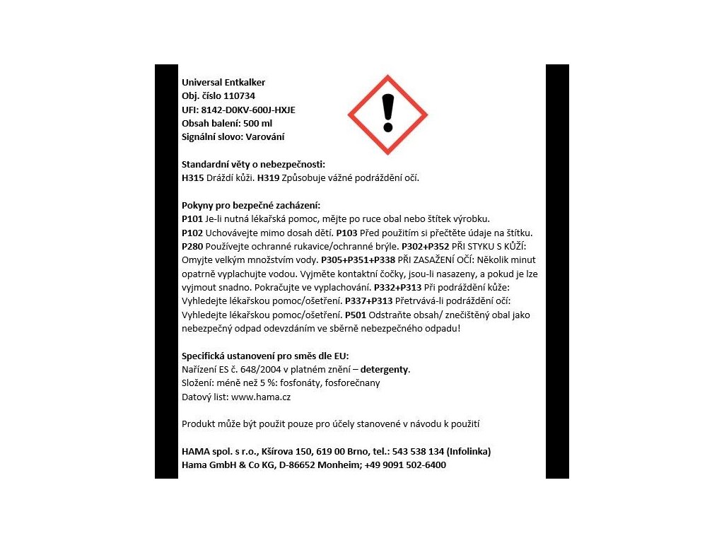 - Použití: odstraňovač vodního kamene