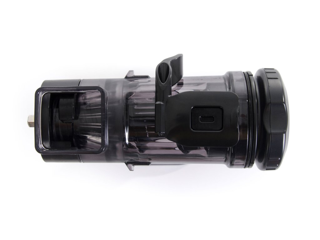 Na konci lisovací části plnicí trubice odšťavňovače je krytka s chytře umístěnými filtry nastavení hustoty šťávy. Chcete čistou ovocnou nebo zeleninovou šťávu nebo máte chuť na hustý džus s dužninou? Pootočením po směru hodinových ručiček uvolněte krytku, vytáhněte ji z trubice a zvolte si jeden ze tří režimů odšťavňování. Poté krytku zasuňte zpět, uzamkněte otočením proti směru hodinových ručiček a připravte sklenici. Na zdraví!
