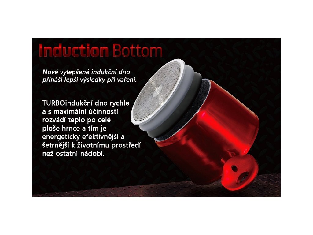 | Speciální vlastnosti: | Ergonomická měkčená rukojeť, Turbo indukční dno |