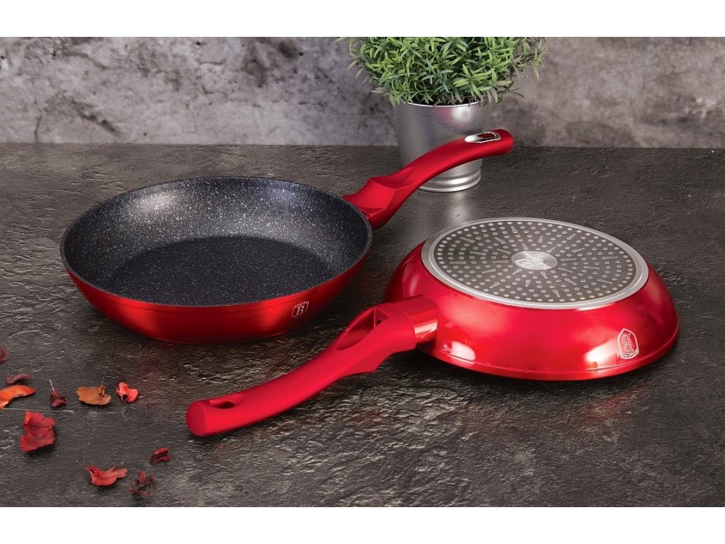 Bohatě vybavená sada nádobí značky Berlingerhaus edice Burgundy Metallic Line se skládá celkem ze 18 kusů nádobí a kuchyňského náčiní. Doménou této sady je 3vrstvý povrch s mramorovým designem charakteristický svou dokonalou nepřilnavostí, žádné potraviny se nepřipalují a díky tomu se kastroly i pánve velice snadno čistí. Zároveň je vhodný pro zdravé vaření s minimem tuku nebo oleje a můžete uspořit až 35 % energie a času oproti obyčejným nerezovým kastrolům.