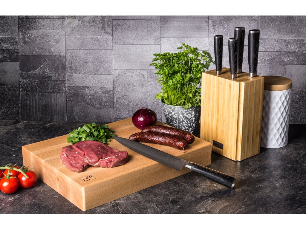 - bambusový blok pro správné a šetrné ukládání