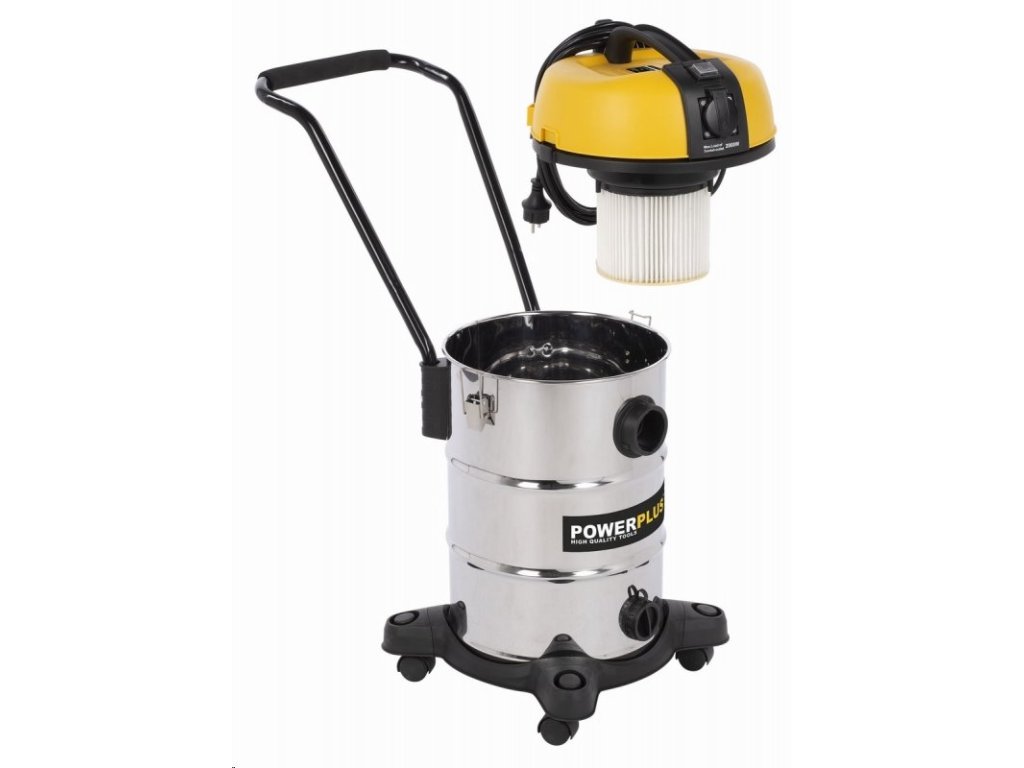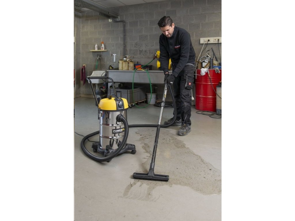 Průmyslový vysavač Powerplus POWX3240 zvládne mokré i suché vysávání a je vhodným pomocníkem do domácností, dílen, garáží i pro potřeby řemeslníků.