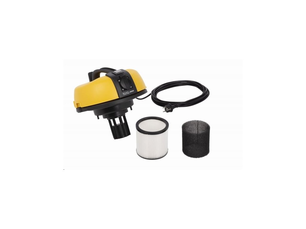 Na víku vysavače najdete kromě praktického madla také zásuvku s konstantním proudem pro připojení elektrického nářadí s automatickým spínačem. Jistě vás potěší také beznástrojový systém pro snadnou a rychlou výměnu filtru. Vysavač je dodáván s bohatým příslušenstvím.