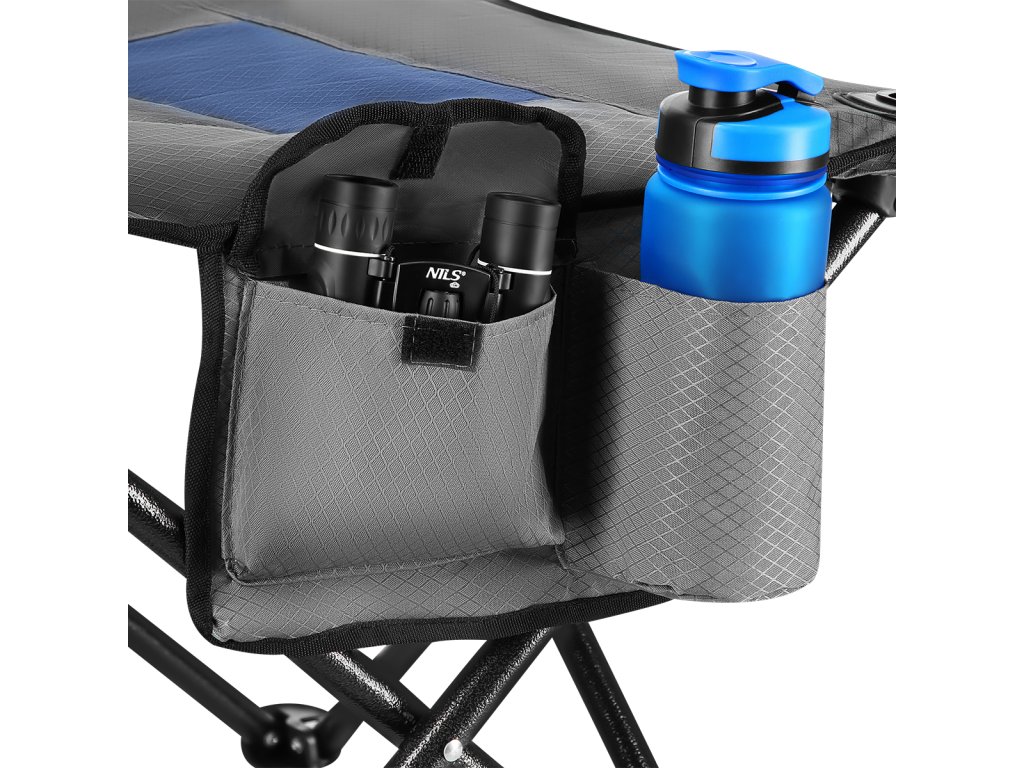 Pokud zvažujete pořízení skládacího křesla, ve kterém budete sedět dlouhé hodiny, nebo chodíte například na ryby, pak je pro Vás jistě nejdůležitějším parametrem pohodlí, a to splňuje model NC3075 na jedničku. Potah křesla je ušit ze 2 vrstev polyesteru v úpravě oxford 600D, prostor mezi vrstvami je vyplněn měkkým materiálem podobným vatě. Potah je v několika místech prošit, aby polstrování zůstalo na svém místě a křeslo tak zůstane po dlouhou dobu stejně pohodlné. Výška sedu je 49 centimetrů. Dalším prvkem, který zvyšuje pohodlí jsou plnohodnotné područky, o které se můžete s jistotou opřít, když do křesla usedáte, nebo z něj vstáváte. Na pravé straně pak naleznete kruhovou kapsu, do které lze odložit například kelímek s nápojem anebo půllitrová láhev, a kapsu s klopou na suchý zip, do které se vejde například peněženka, kapesní dalekohled, nebo mobilní telefon.