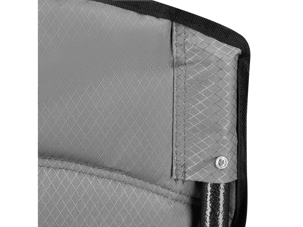 Křeslo NC3075 je skládací, takže si jej můžete snadno vzít s sebou na cesty. K tomu vám dopomůže velice pevný, polyesterový obal, který je součástí sady a který produkt ochrání před poškozením a udrží jej v čistotě během uskladnění. Vak je doplněn popruhem přes rameno. Za područkami jsou otočné háčky, které po zajištění zamezují složení, nebo rozložení konstrukce.