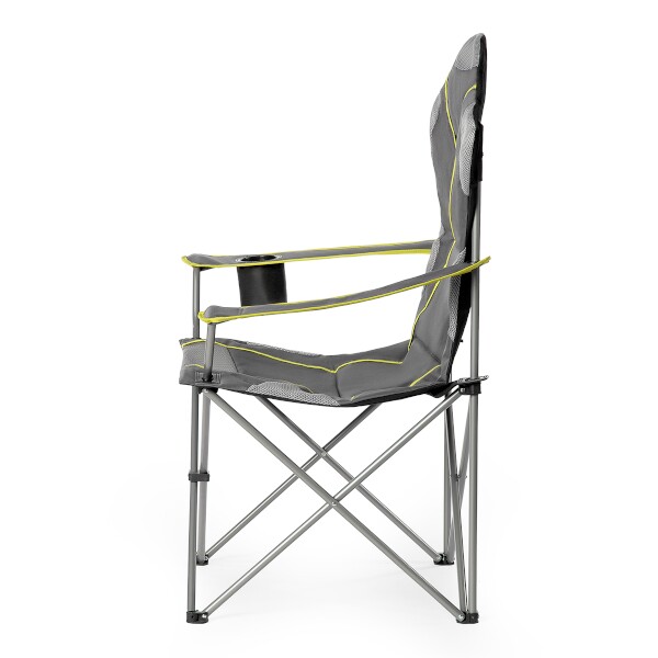 Jedná se o univerzální křeslo, které obstojí v jakýchkoliv podmínkách a terénech. Za jeho stabilitu odpovídají pevné ocelové profily o průměru 16 mm. Díky robustní konstrukci a polyesteru v úpravě 600D Oxford, který je velmi odolný, má křeslo nosnost až 130 kg. Doplněním jsou protiskluzové nožky, které zabraňují posouvání.