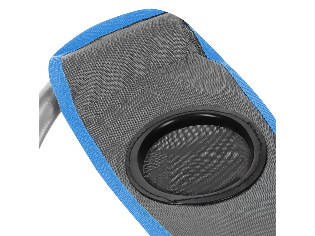 Loketní opěrky mají možnost regulace výšky jednoduchým posunem zadní části po profilu konstrukce.Pravá opěrka lokte je opatřena košíkem, do kterého se pohodlně vejde menší láhev, nebo vysoká sklenice. Pro snadné přenášení lze křeslo složit do dodávaného vaku s popruhem přes rameno.
