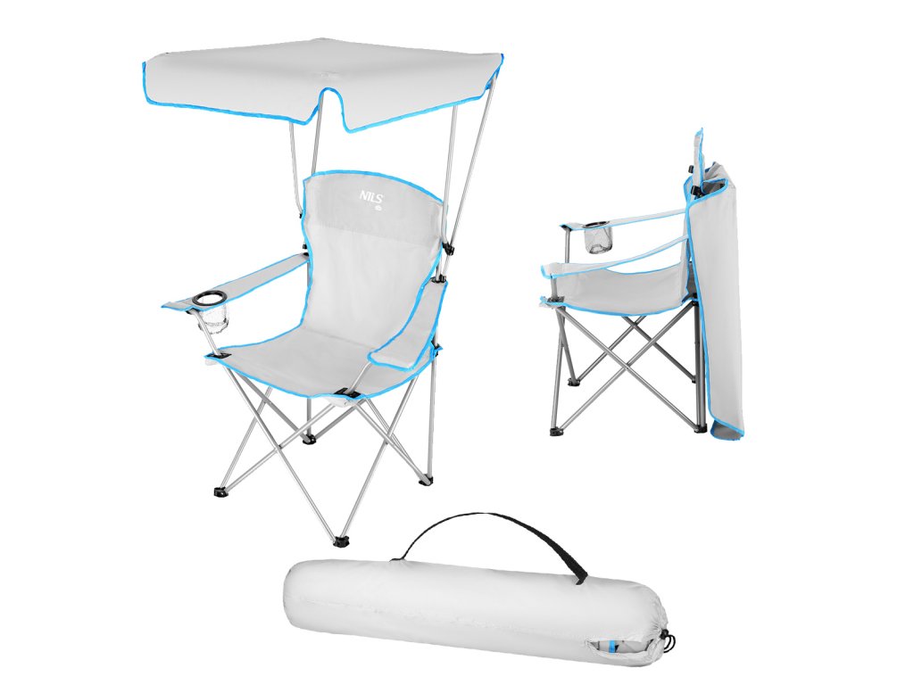 Skládací, kempingová židle se stříškou NILS Camp NC3087 je ideální k vodě, na ryby, na festival, nebo například na dovolenou pod stan. Složitelná stříška ochrání před slunečními paprsky a nebo drobnou přeháňkou.