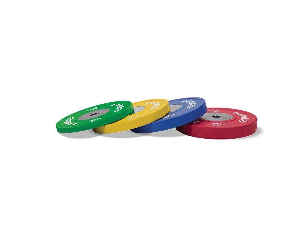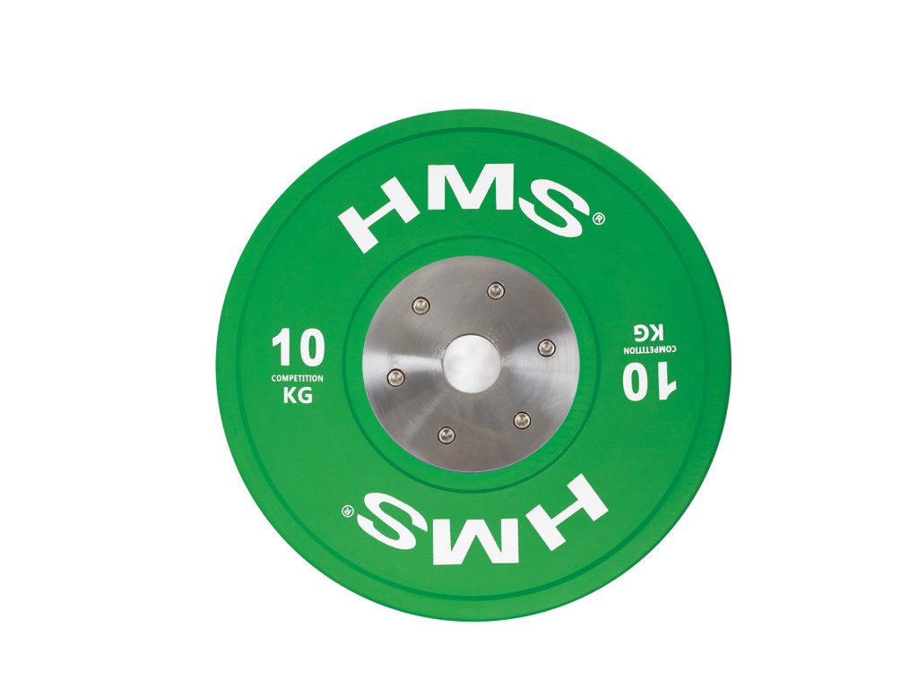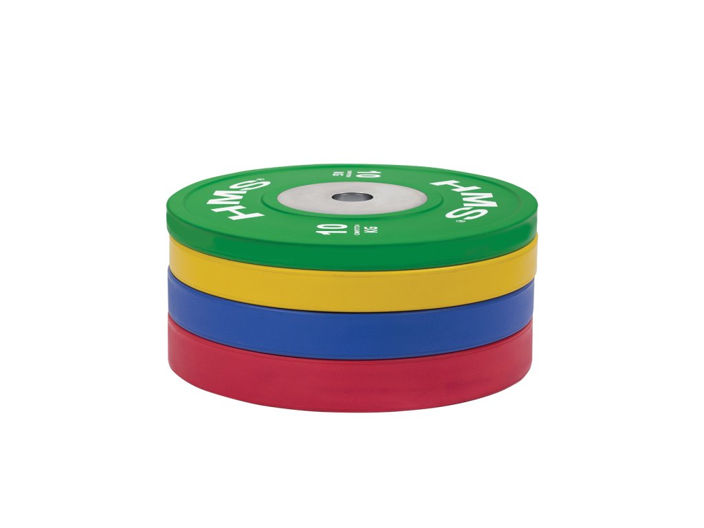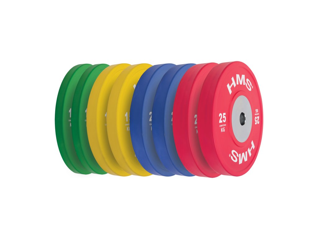 Set oympíjských kotoučů HMS vhodný pro závody ve vzpěračství a při funkčním tréninku. Tento set je zbarven přesně podle závodních norem. Jeho hlavním parametrem je odolnost, kdy i po odhodu z velké výšky, zůstane kotouč i podloží bez známky poškození. Kotouč je určen pro olympijské osy s průměrem trnů 50 mm.