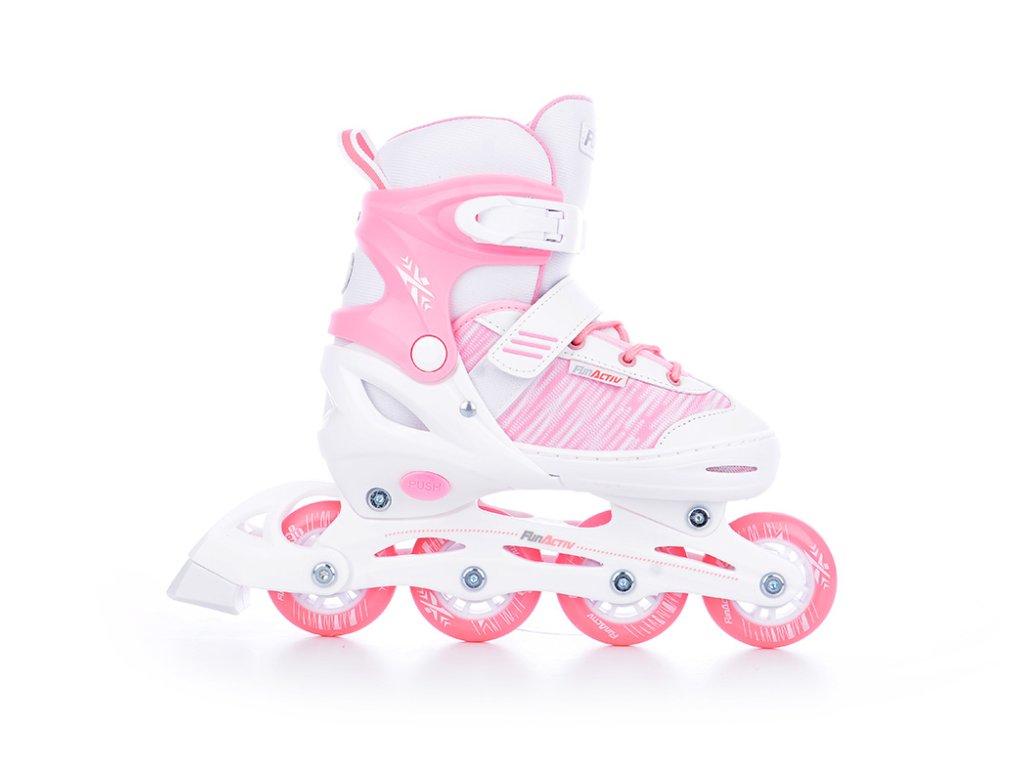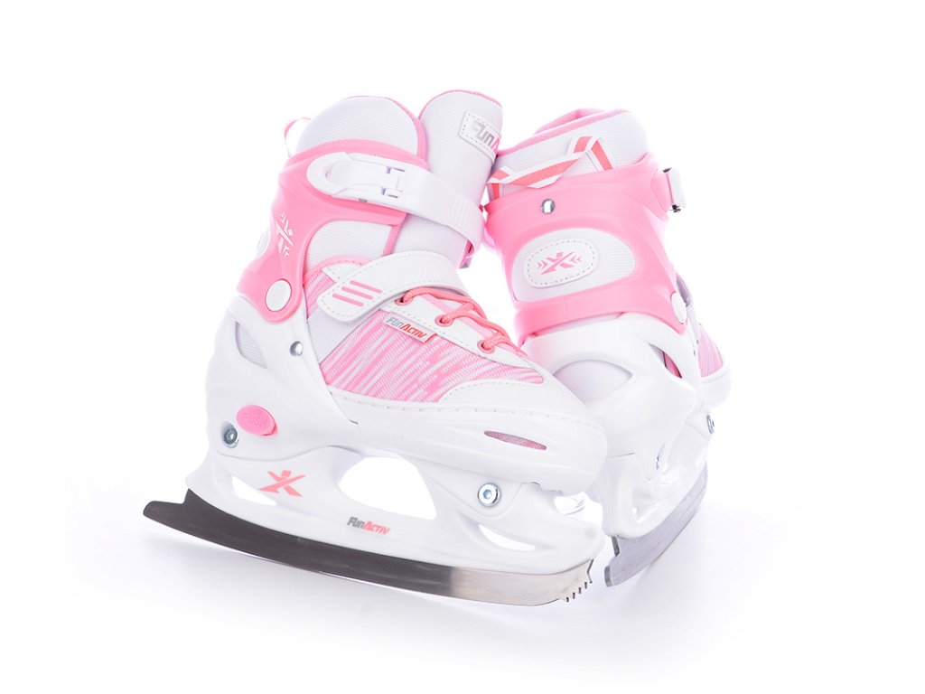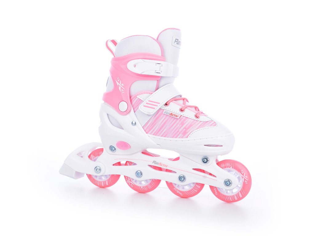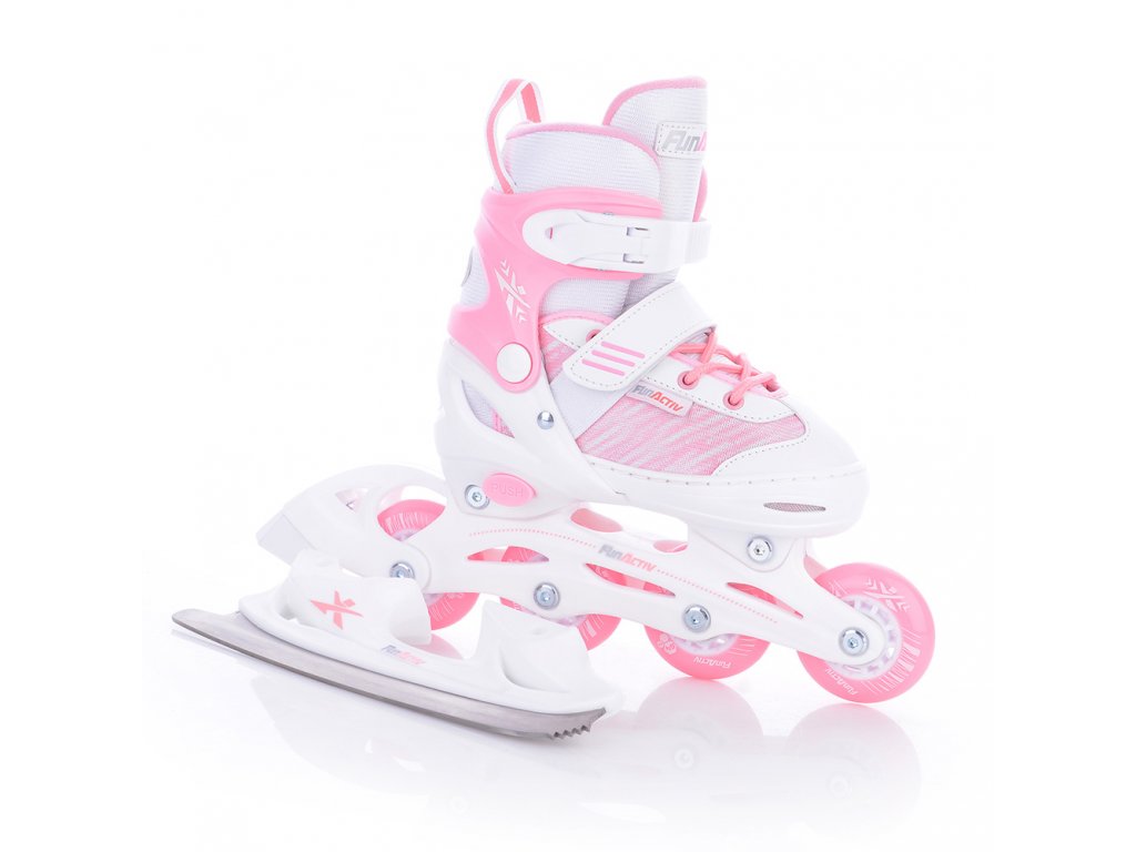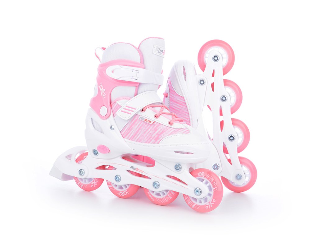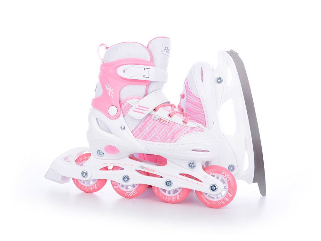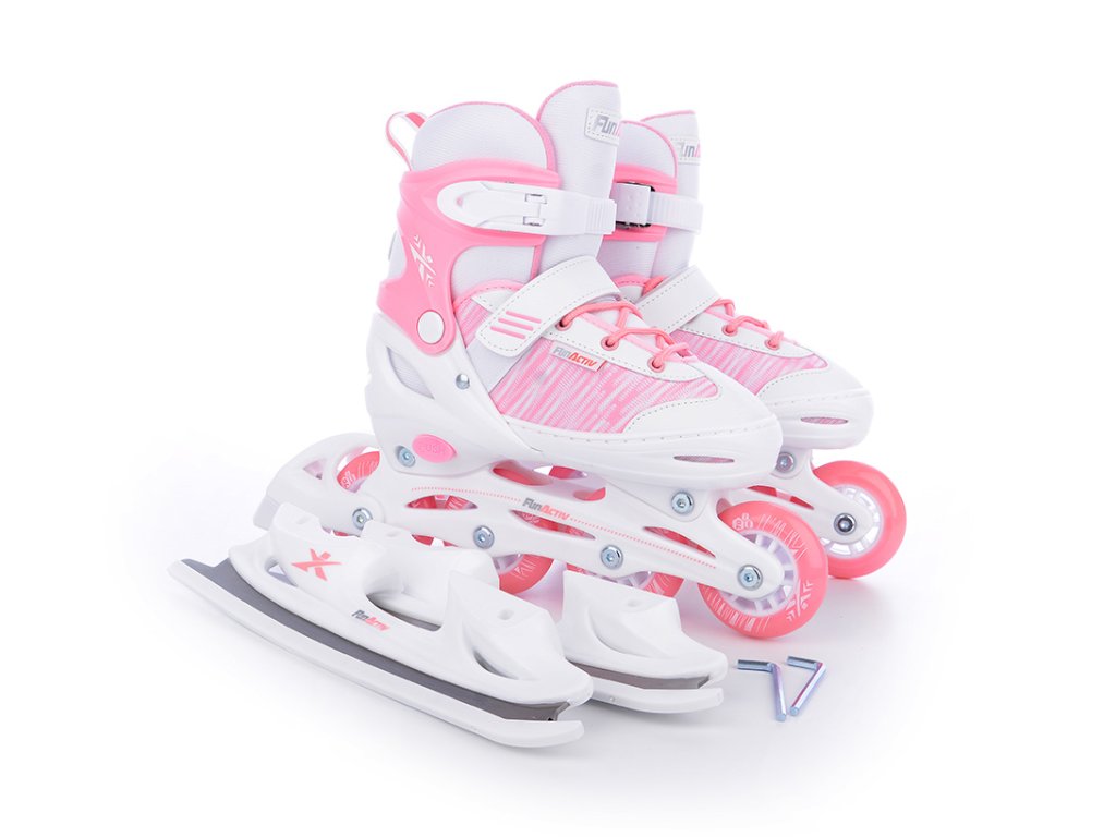 Dětské roztahovací brusle FunActiv se speciální duální konstrukcí pro celoroční rekreační bruslení. Konstrukční systém umožňuje záměnu zimních bruslí za podvozek s kolečky - tzn. umožňuje jednoduchou přestavbu na in-line brusle. Měkká rychleschnoucí výstelka zajišťuje pohodlnost dětské nohy. Předností bruslí je jednoduchá nastavitelnost velikosti o 3 čísla snadným stisknutím tlačítka v boční části skeletu.