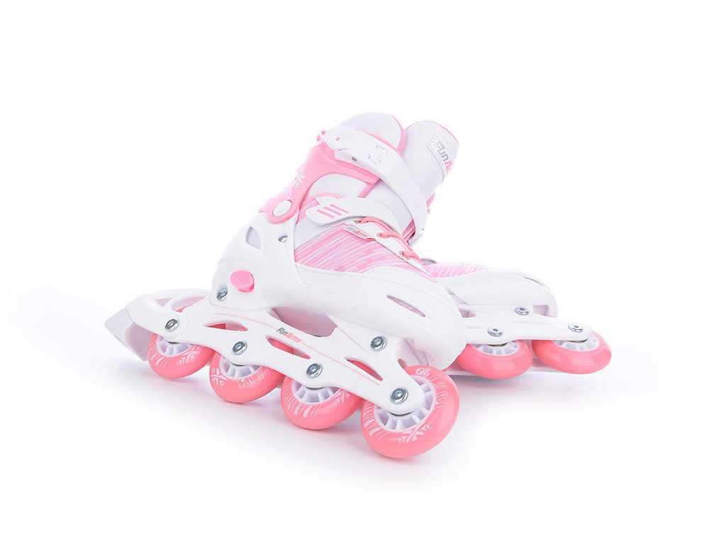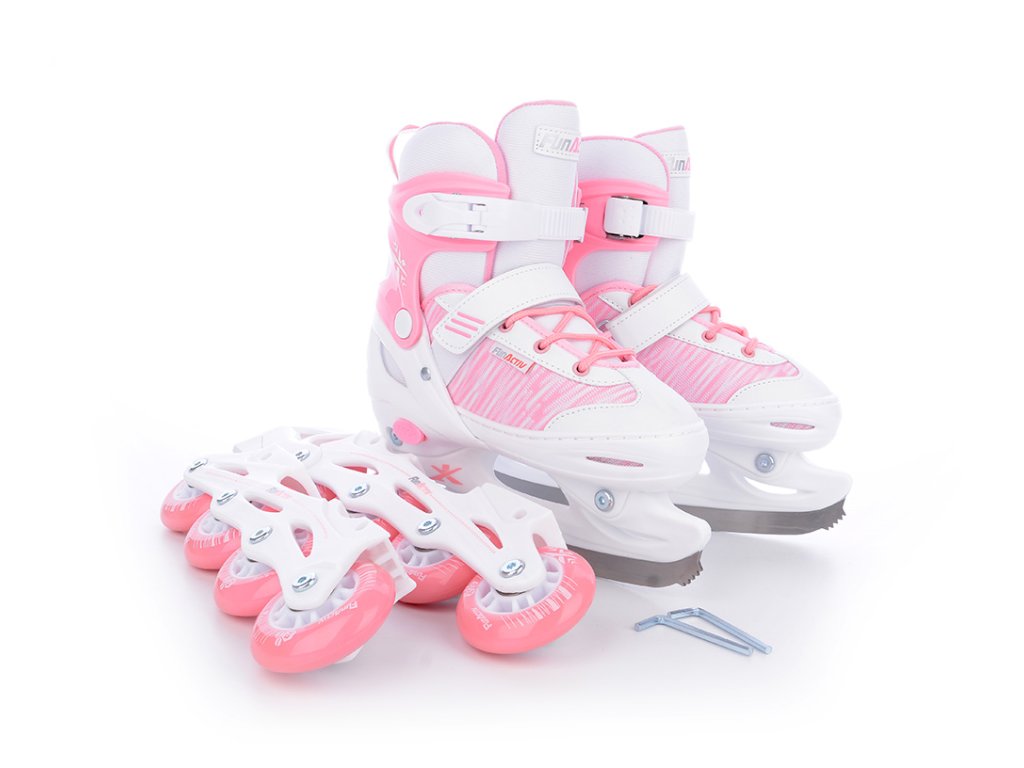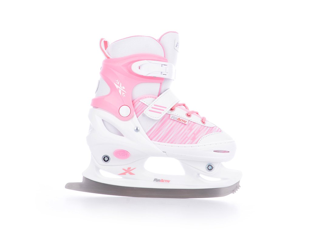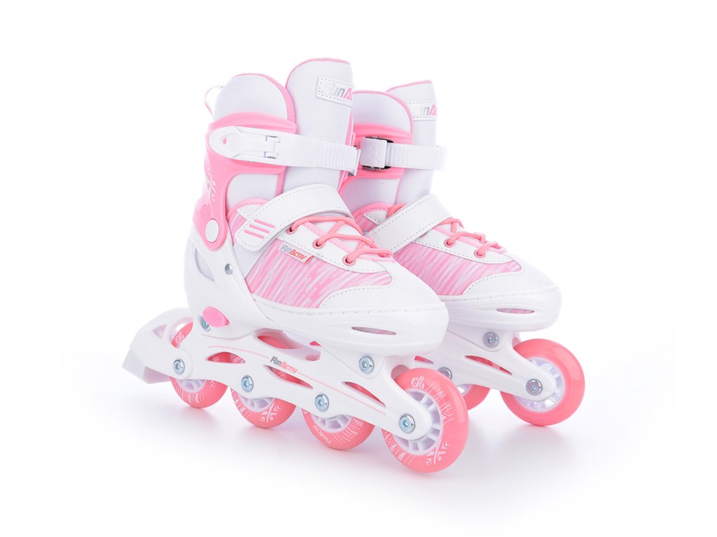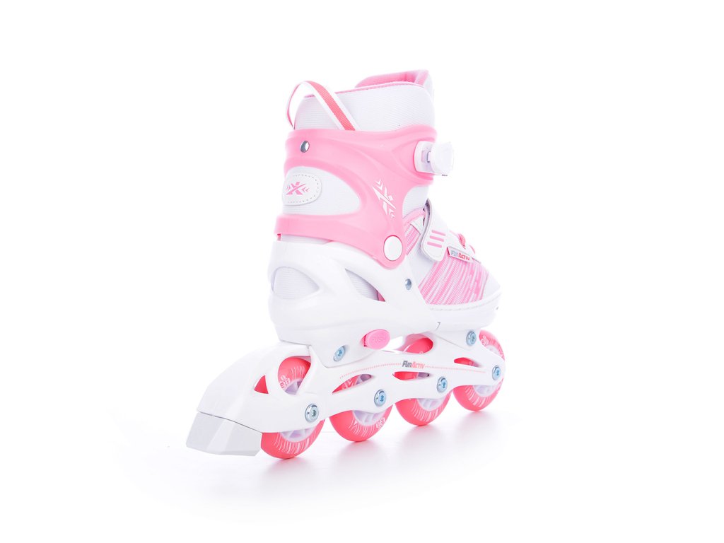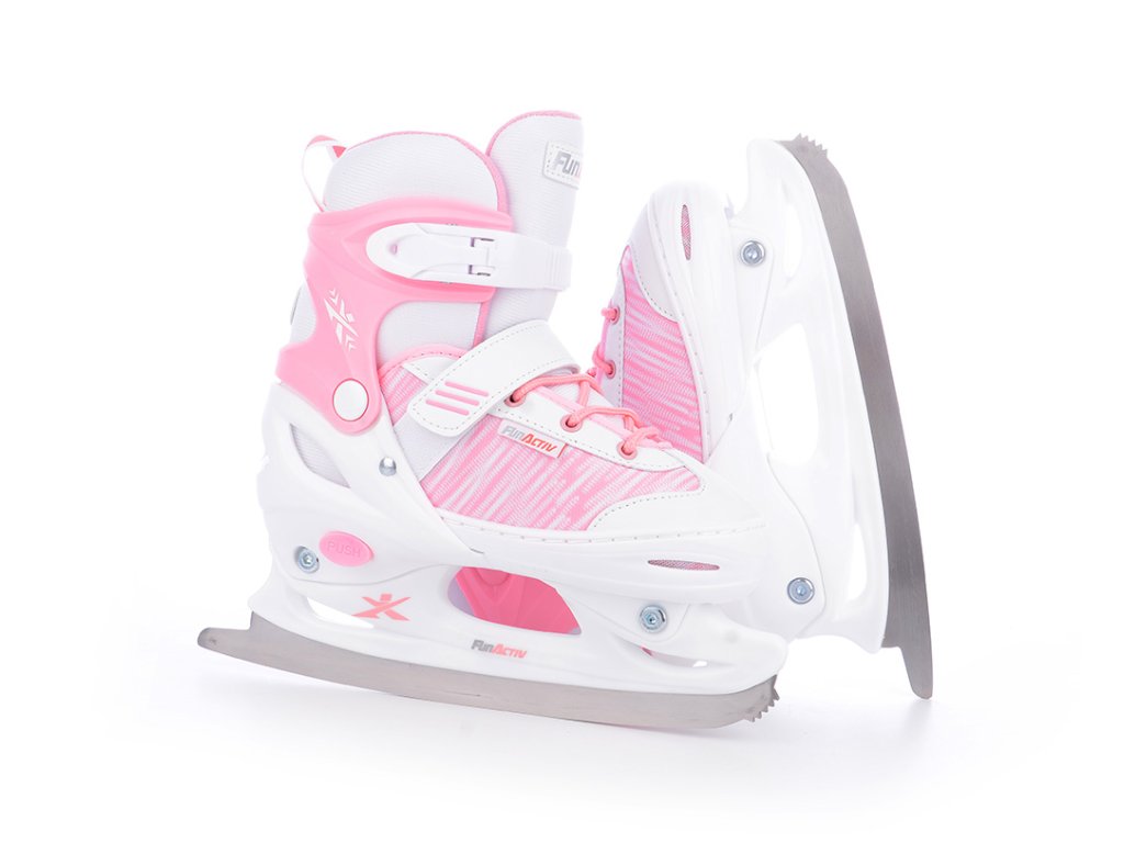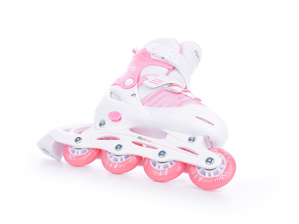 Dětské roztahovací brusle FunActiv se speciální duální konstrukcí pro celoroční rekreační bruslení. Konstrukční systém umožňuje záměnu zimních bruslí za podvozek s kolečky - tzn. umožňuje jednoduchou přestavbu na in-line brusle. Měkká rychleschnoucí výstelka zajišťuje pohodlnost dětské nohy. Předností bruslí je jednoduchá nastavitelnost velikosti o 3 čísla snadným stisknutím tlačítka v boční části skeletu.